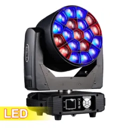 The Bee Eye LED Moving Head is a powerful 600W lighting fixture featuring 19 × 30W 4-in-1 LEDs for vibrant, rich colors. With a zoom range of 4°-60° and 21-99 DMX channels, it offers precise control. It supports DMX, self-propelled, voice control, and master/slave modes. Key features include adjustable strobe, electronic dimming, and an IP33 rating for durability. Perfect for stage, event, and installation use, it provides dynamic effects with flexible operation modes and easy setup.