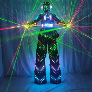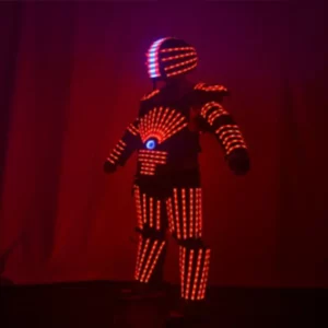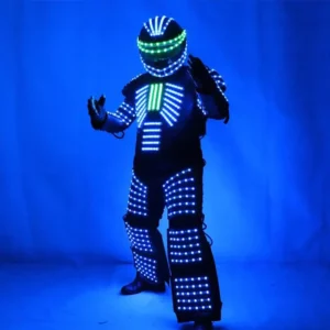 • The LED robot suit, perfect for clubbing, parades, concerts, and various events. This suit comes with a remote control for effortless color and flashing frequency adjustments.