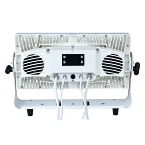 A: The fixture features 44 high-power RGBW LEDs (15W each) with independent control. For white light applications, the 6500K-7500K cool white temperature range delivers crisp, consistent illumination. The 0-100% linear dimming ensures smooth fades without color shift.